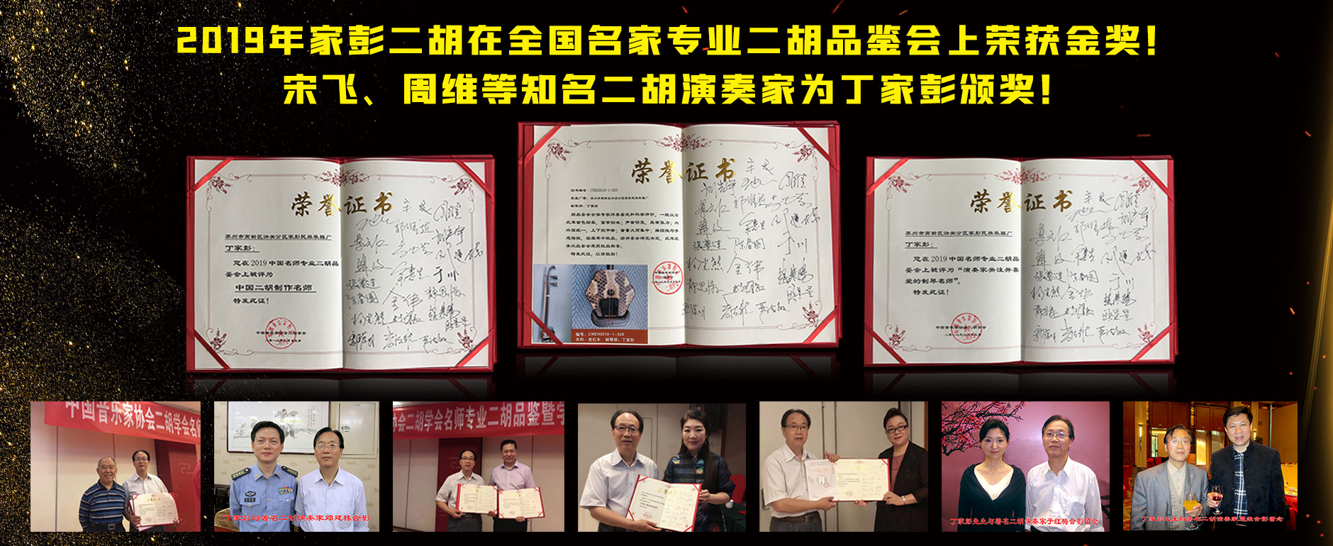 二胡制作大師丁家彭先生1949年出生樂器世家,17歲隨其祖父學琴藝,并深得精髓,其聰穎好學,悉心鉆研與 探求二胡制作,博得同行的欽佩贊許,更得了許多知名演奏家的稱贊,充分認識到二胡制作每個環節,都對二胡制作都有影響力,因此對二胡的選材,選料,蟒皮都十分嚴格,二胡整體穩定性良好,環境干擾影響極小。